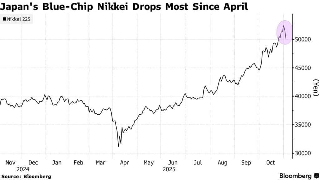 Japanese financial markets are becoming more volatile, as investors reassess valuations and fiscal health. The equity market has seen significant swings, including a 4.7% one-day decline in early November for the Nikkei, with SoftBank Group dropping 10% and chip equipment manufacturer Advantest declining 6%. Although prices remain substantially higher than at the start of the year, thanks to corporate governance reforms, buybacks, and better earnings, the recent volatility shows that investors now want more solid evidence of real returns from AI-related investments.